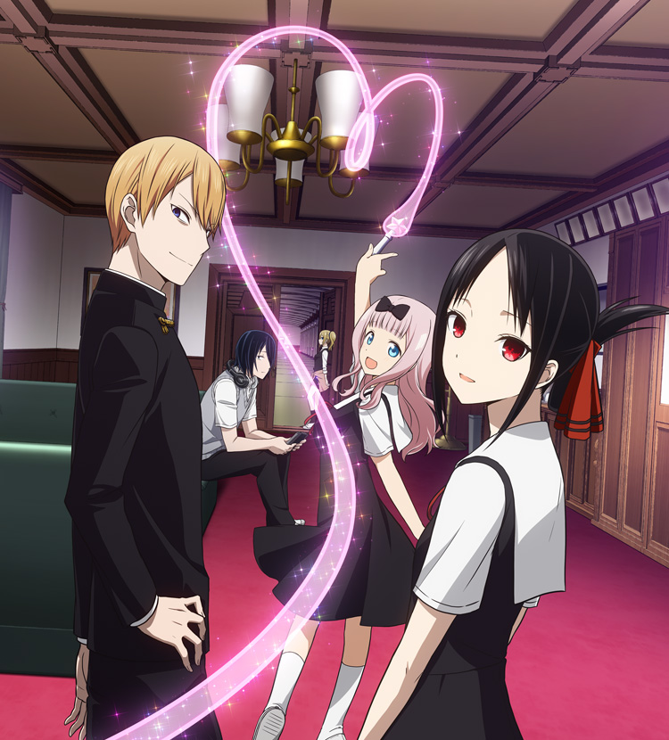生徒会メンバーの藤原千花や石上優など、個性的な仲間たちに振り回されながら、恋とプライドをかけた頭脳戦がコミカルに描かれます。